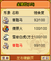 | 快捷键提示:坐骑管理(进入菜单后按4键) | |